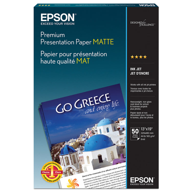 Epson Premium Presentation Paper, White, 13in x 19in, 50 Sheets Per Pack, 44 Lb, 97 Brightness