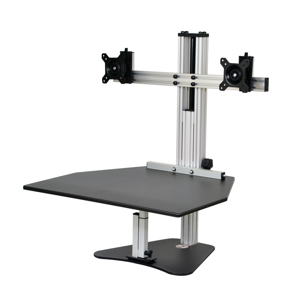 Turn your desk into a standing workstation with the Wallaby Elite, which allows you to mount 2 computer screens. This desktop is fully adjustable to help you achieve ideal viewing and working positions.