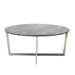 Eurostyle Llona Round Coffee Table, 15-4/5inH x 36inW x 36inD, Brushed Steel/Black Marble