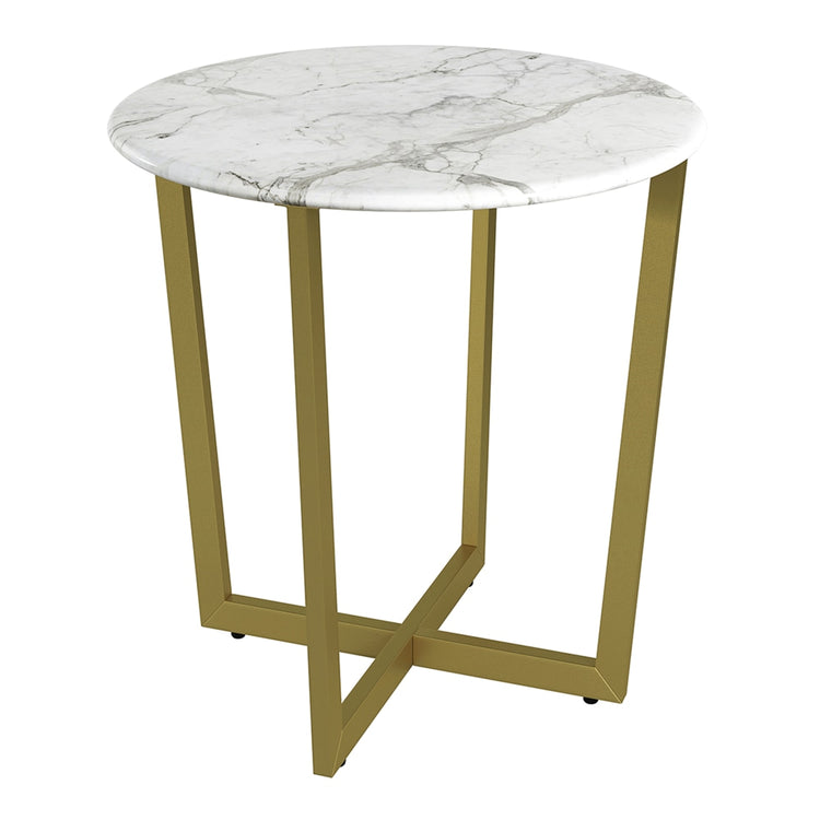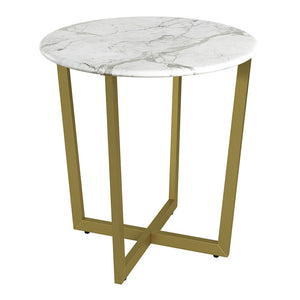 Eurostyle Llona Round Side Table, 22-1/8inH x 23-3/5inW x 23-4/5inD, Matte Gold/White Marble