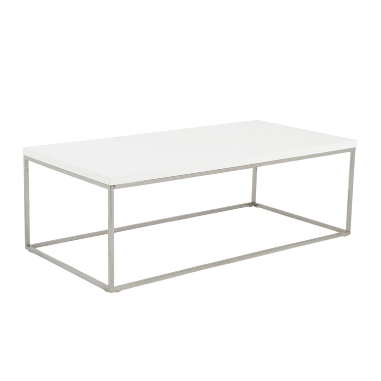 Eurostyle Teresa Rectangle Coffee Table, 15-1/2inH x 47inW x 23-1/2inD, Polished Steel/High Gloss White