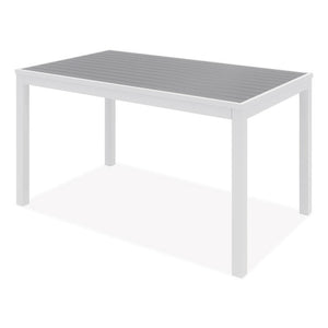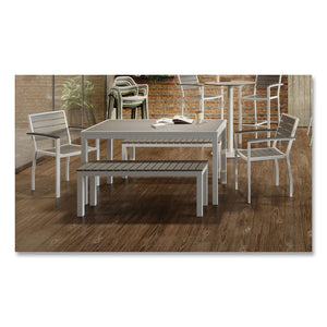 Stylish, stately and sturdy with an attractive, wonderfully practical design, Eveleen Outdoor Dining Table Sets have what you need to create a chic, comfortable space where you or your patrons can find a bit of outdoor respite. Featuring dent- and scratch-resistant, easy to clean "polywood" synthetic-polymer surfaces along with corrosion- and fade-resistant aluminum frames, the whole package is water-, mold- and temperature-resistant, fully primed to withstand the elements, making this set an ideal choice for outdoor use, whether you need to fully furnish your restaurant's patio or you simply need to find a suitable picnic-table alternative for your home's backyard. Set includes two matching, wide-format benches and two matching armchairs to achieve a tailored, cohesive look. which is perhaps everything you need to craft your ideal outdoor oasis. Chairs and benches ship fully assembled; table requires assembly.