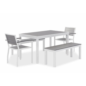 Eveleen Outdoor Dining Table Set, 55" x 35" x 29" Rectangular Table, 2 Benches, 2 Armchairs, Gray/White