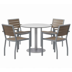 Eveleen Outdoor Patio Table, Four Mocha Powder-Coated Polymer Chairs, Round, 36" Dia x 29h, Fashion Gray