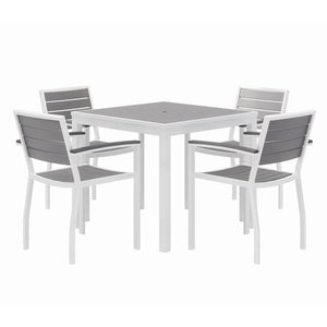 Eveleen Outdoor Patio Table with Four Gray Powder-Coated Polymer Chairs, 32" Square, Gray