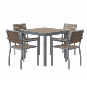 Eveleen Outdoor Patio Table with Four Mocha Powder-Coated Polymer Chairs, Square, 32", Mocha