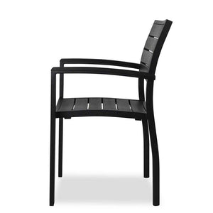 Stylish and sturdy, Eveleen is designed to provide the perfect respite outdoors. With its contemporary design, the Eveleen chairs are a go-to option for creating a chic yet comfortable outdoor space. Constructed from durable aluminum and polywood slats, Eveleen is designed to withstand the elements.