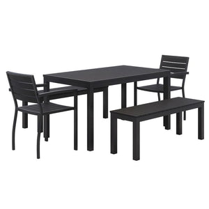 Eveleen Outdoor Patio Table with Two Black Powder-Coated Polymer Chairs and Two Benches, 32 x 55, Gray