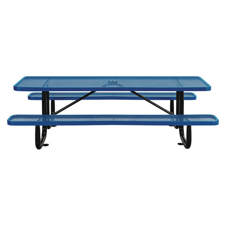 Expanded Steel Picnic Table, Rectangular, 96 x 62 x 29.5, Blue Top, Blue Base/Legs