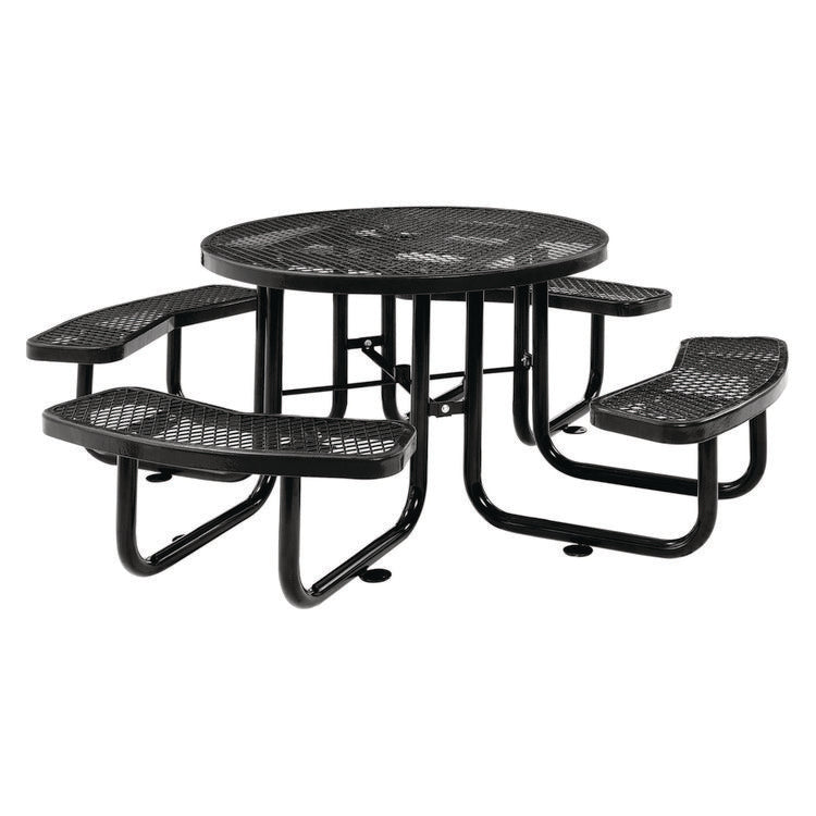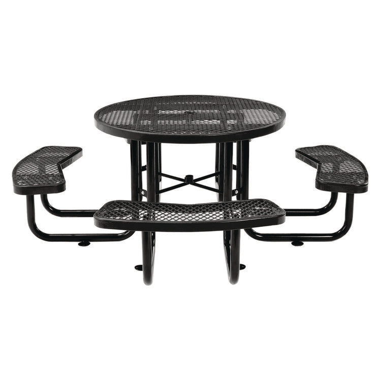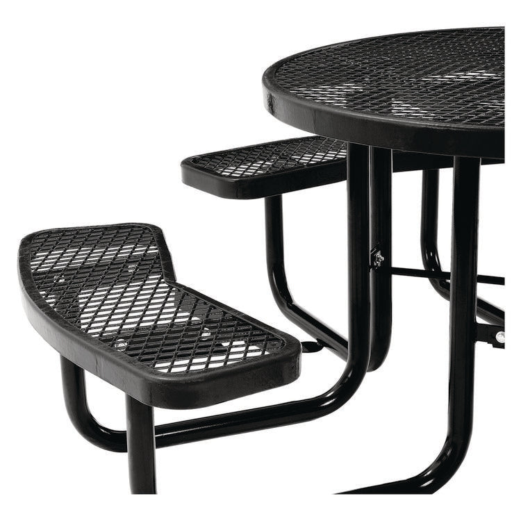 Expanded Steel Picnic Table, Round, 46" Dia x 29.5"h, Black Top, Black Base/Legs