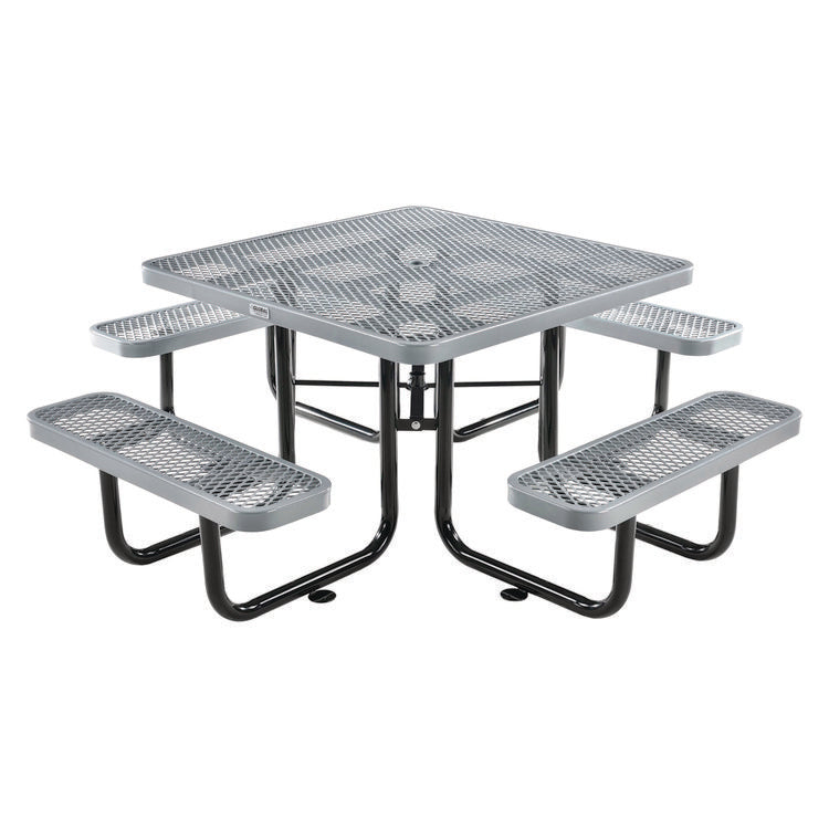 Expanded Steel Picnic Table, Square, 81 x 81 x 29.5, Gray Top, Gray Base/Legs