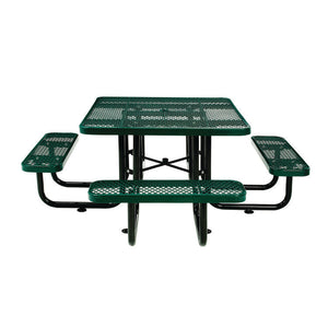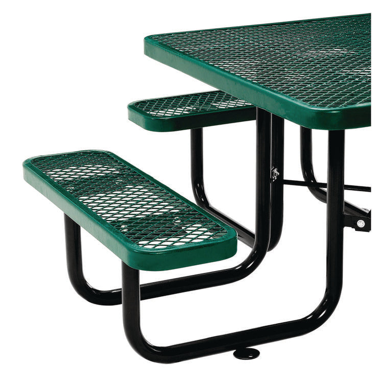 Expanded Steel Picnic Table, Square, 81 x 81 x 29.5, Green Top, Green Base/Legs
