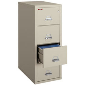 Protect your valuable documents with the FireKing vertical file cabinet. With a space-saving, fireproof design, this legal-size, parchment, 4-drawer cabinet makes a great addition to your business.