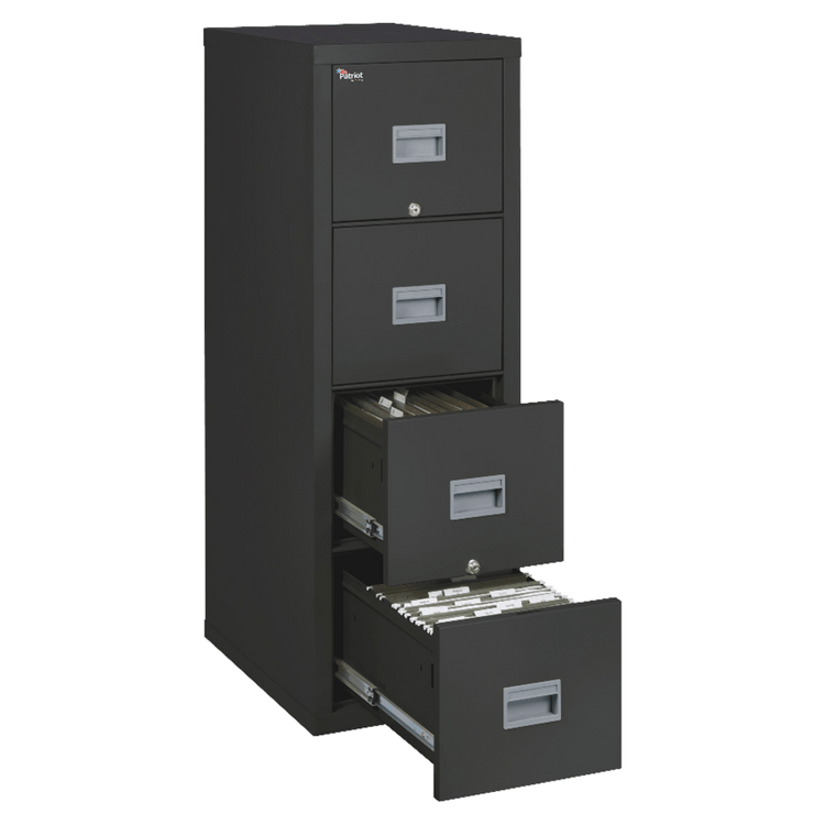 FireKing Patriot 17-3/4inD Vertical 4-Drawer Fireproof File Cabinet, Metal, Black, White Glove Delivery