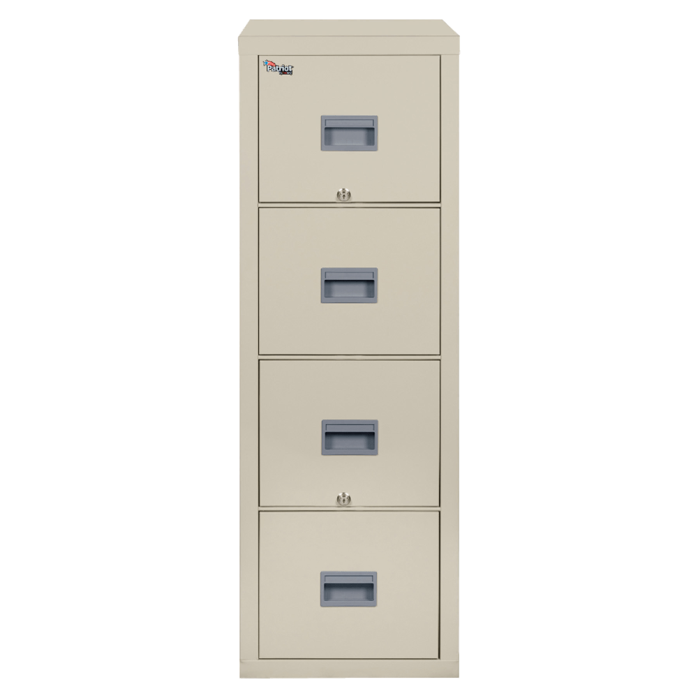 FireKing Patriot 17-3/4inD Vertical 4-Drawer Letter-Size Fireproof File Cabinet, Metal, Parchment, White Glove Delivery