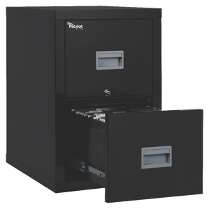 FireKing Patriot 25inD Vertical 2-Drawer Fireproof File Cabinet, Metal, Black, White Glove Delivery