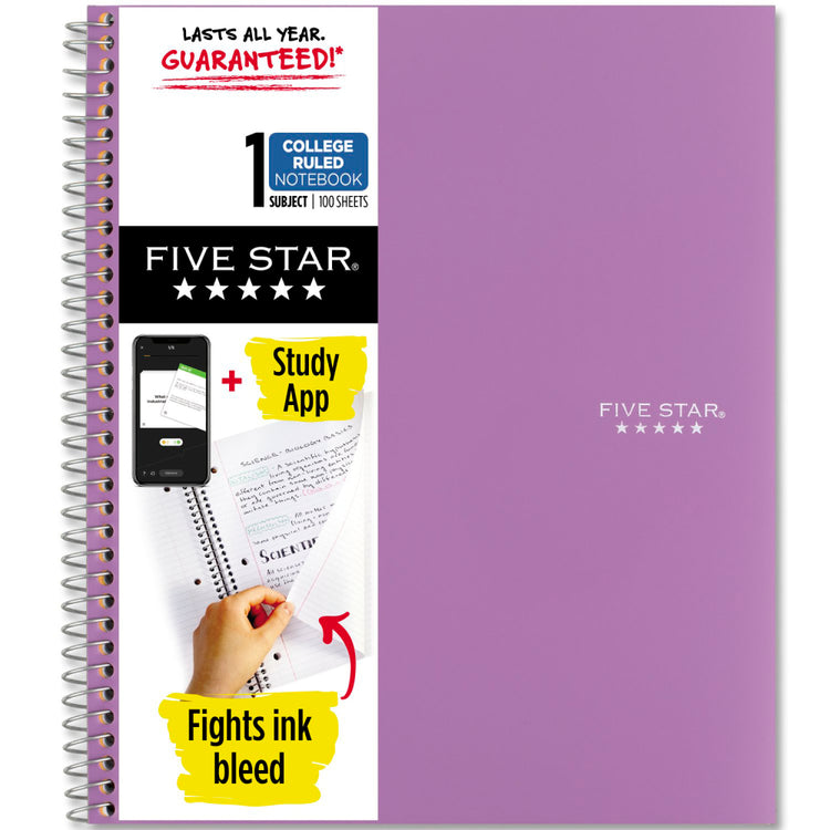 Five Star Wire-Bound Notebook, 8-1/2in x 11in, 1 Subject, College Ruled, 100 Sheets, Amethyst Purple