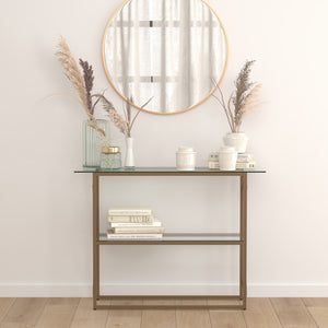 Flash Furniture Glass Console Table, 32inH x 43-1/4inW x 13-3/4inD, Clear/Matte Gold