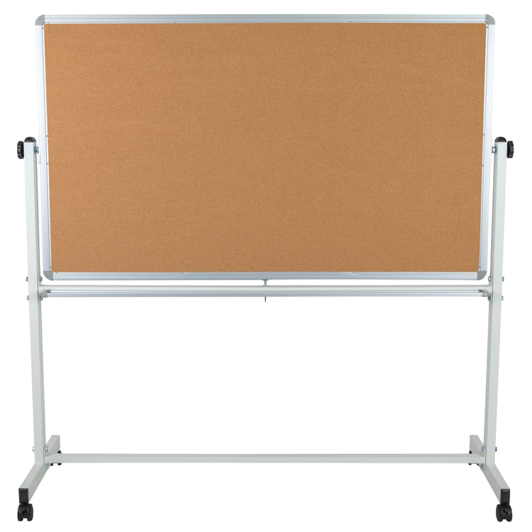 Flash Furniture Reversible Cork Bulletin/Magnetic Dry-Erase Whiteboard, 62 1/2in x 62 1/4in, Silver Aluminum Frame