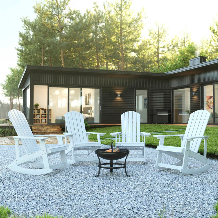 Flash Furniture Savannah 5-Piece All-Weather Adirondack Rocking Chair Set With Fire Pit, White