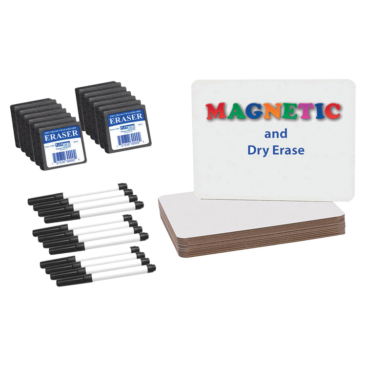 Flipside Magnetic Dry-Erase Board Class Pack, 9in x 12in, White, Set Of 12