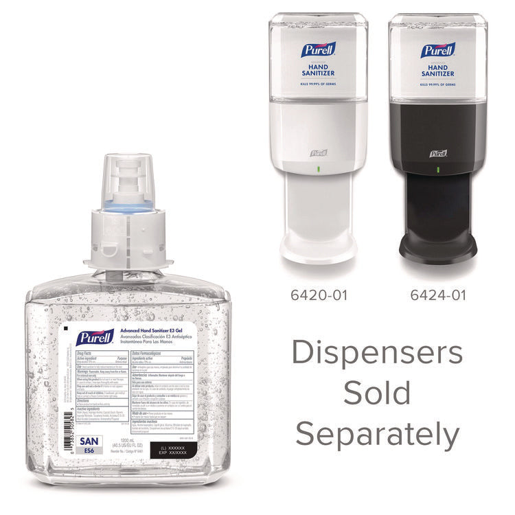 From America's #1 brand of instant hand sanitizer comes a powerful formulation that kills 99.99% of most common germs that may cause illness. Research shows that 80 percent of people said seeing PURELL® products left them with a positive overall impression of the business. Plus, PURELL® Advanced Hand Sanitizer outperforms other hand sanitizers ounce for ounce. PURELL® Advanced Hand Sanitizer E3 Gel is a no-rinse hand sanitizer gel listed with NSF International as an E3 for use in all departments of USDA-regulated food processing environments. It is approved for hand and food contact use after handwashing. The fragrance-free gel formula uses only high-quality, dye-free ingredients. These 1,200 mL refills are designed for cost and labor savings. The transparent refill allows teams to monitor hand sanitizer levels with a simple look, meaning there's no need to open the dispenser. The refill has a factory-sealed nozzle that helps eliminate contamination, and each PURELL® Hand Sanitizer formulation is manufactured according to strict FDA safety and quality standards. Refill bottles are recyclable. Refills for the ES6 Automatic Hand Sanitizer Dispenser (6420-01, 6424-01), sold separately.