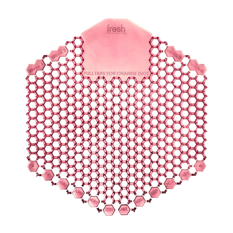 Install these Fresh Products Wave 3-D Urinal Screens in the urinals in your restroom to help ensure a clean, fresh-smelling space. The hex design of the screen helps minimize the chance of splash back, and the consistent fragrance release leaves your bathroom smelling fresh for longer.