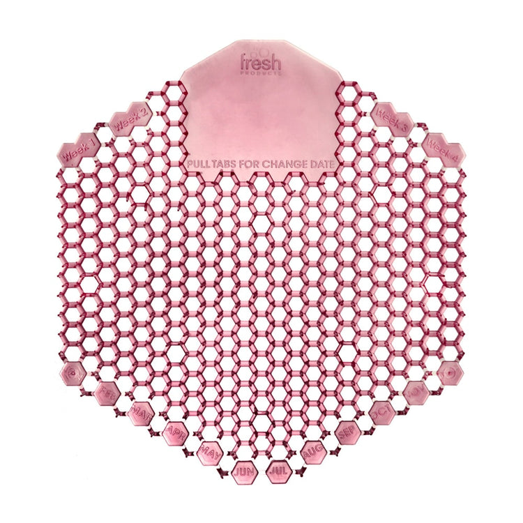 Install these Fresh Products Wave 3-D Urinal Screens in the urinals in your restroom to help ensure a clean, fresh-smelling space. The hex design of the screen helps minimize the chance of splash back, and the consistent fragrance release leaves your bathroom smelling fresh for longer.