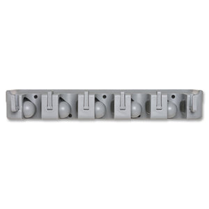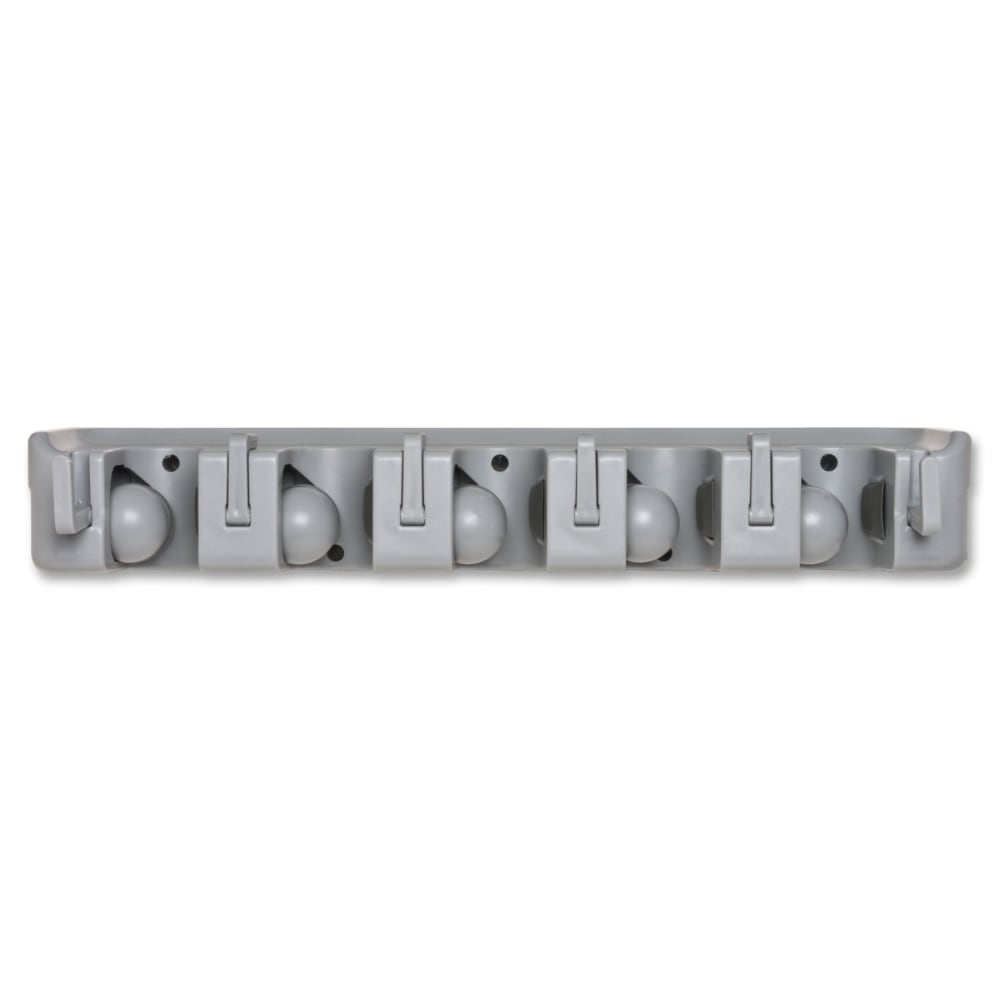 Genuine Joe Cleaning Tool Wall Organizer Rack - 5 x Broom - 3.8in Height x 16.5in Width x 2.8in Depth - Gray - ABS Plastic - 24 / Carton