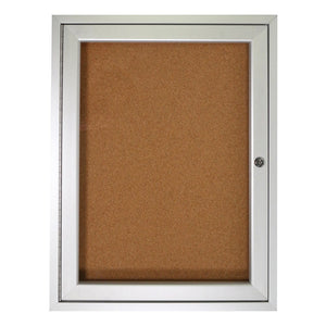 Ghent 1-Door Enclosed Natural Cork Enclosed Bulletin Board, 24in x 18in, Satin Aluminum Frame