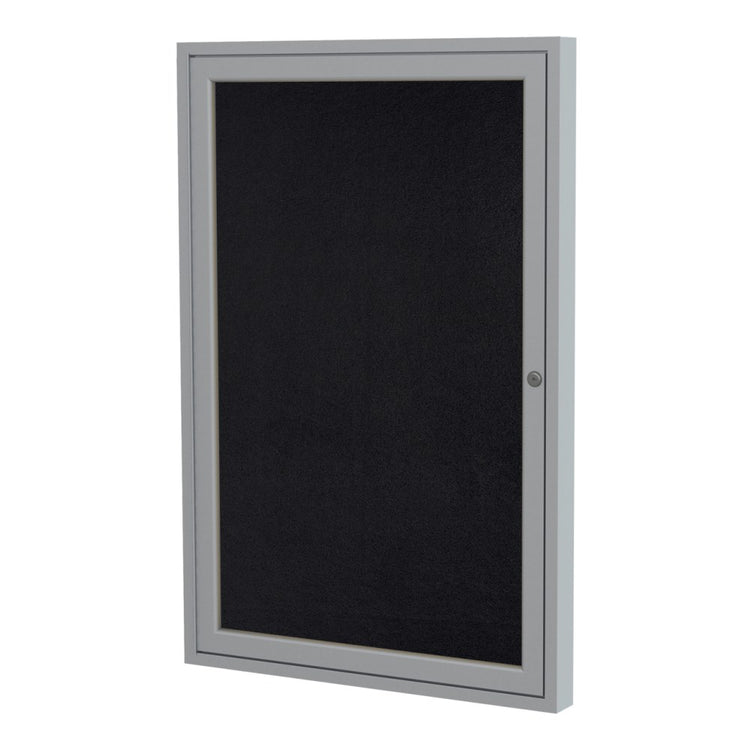 Ghent 1-Door Enclosed Rubber Bulletin Board, 36in x 24in, 90% Recycled, Black Satin Aluminum Frame