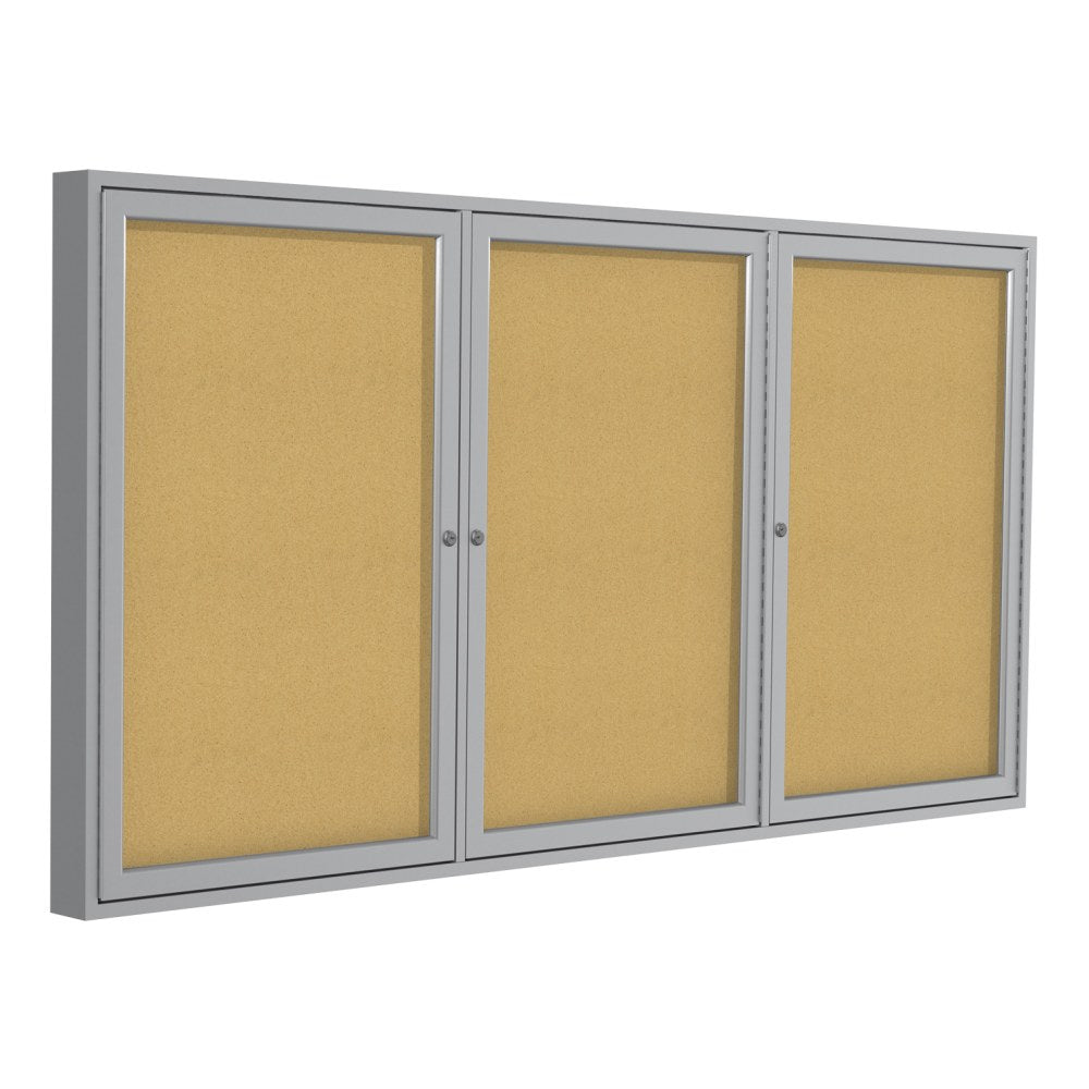 Ghent 3-Door Enclosed Cork Bulletin Board, 48in x 96in, Natural, Satin Aluminum Frame