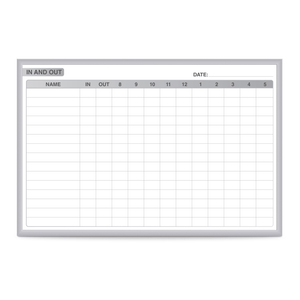 Encourage healthy communication in your workplace when you put up this Ghent Manufacturing In/Out Dry-Erase Board. Sturdy and sleek, this board is ideal for helping everyone know whether team members are present or have stepped out.