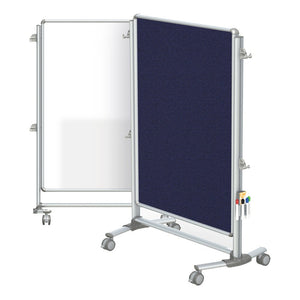 Ghent Nexus Jr Partition Double-Sided Mobile Magentic Fabric/Non-Magnetic Dry-Erase/Bulletin Board, 34 1/4in x 46 1/4in, Blue Board/Silver Aluminum Frame
