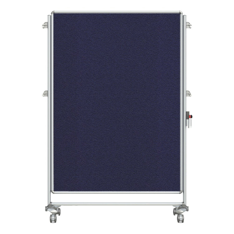 Ghent Nexus Partition Double-Sided Mobile Magnetic Fabric/Non-Magnetic Dry-Erase/Bulletin Board, 46 1/4in x 65in Blue Board/Silver Aluminum Frame