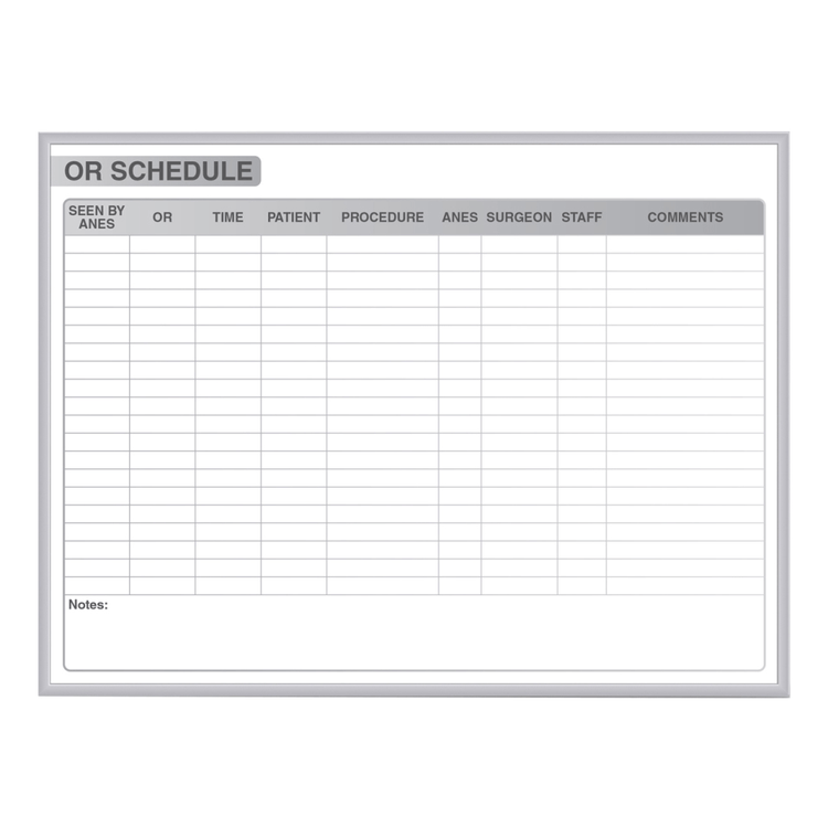 Ghent OR Schedule Magnetic Dry-Erase Whiteboard, 48in x 96in, Aluminum Frame With Silver Finish