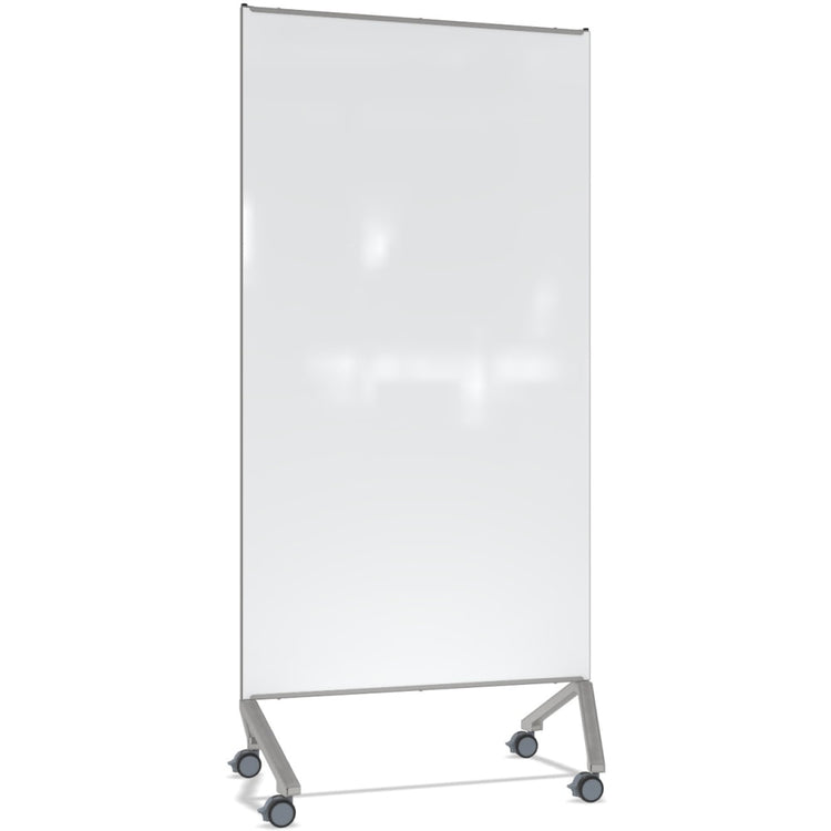 Ghent Pointe Magnetic Mobile Dry-Erase Glassboard, 76-1/2in x 36-3/16in, White, Silver Metal Frame
