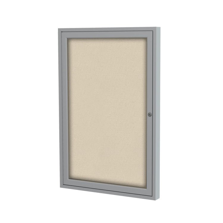 Ghent Traditional Enclosed 1-Door Fabric Bulletin Board, 24in x 18in, Beige, Satin Aluminum Frame