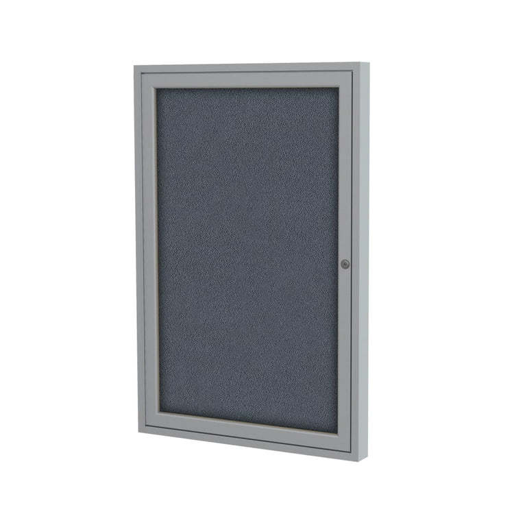 Ghent Traditional Enclosed 1-Door Fabric Bulletin Board, 24in x 18in, Gray, Satin Aluminum Frame