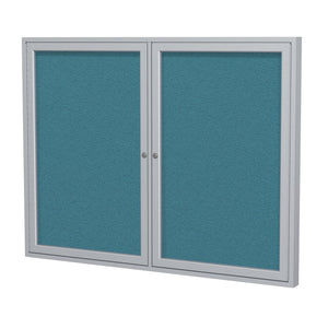 Ghent Traditional Enclosed 2-Door Fabric Bulletin Board, 36in x 48in, Teal, Satin Aluminum Frame