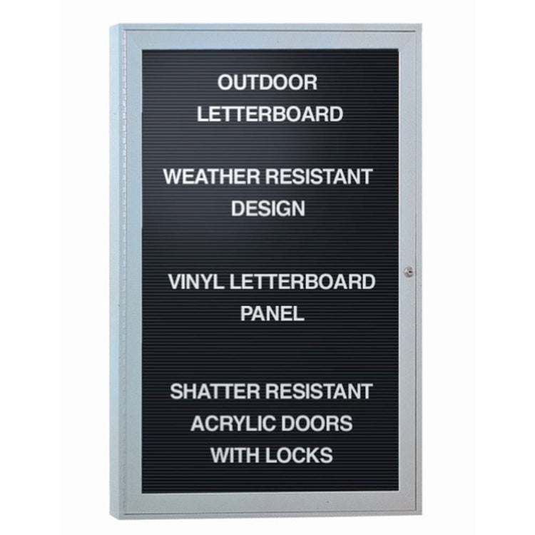 Ghent Traditional Enclosed Changeable Vinyl Letterboard, 36in x 30in, Black, Satin Aluminum Frame