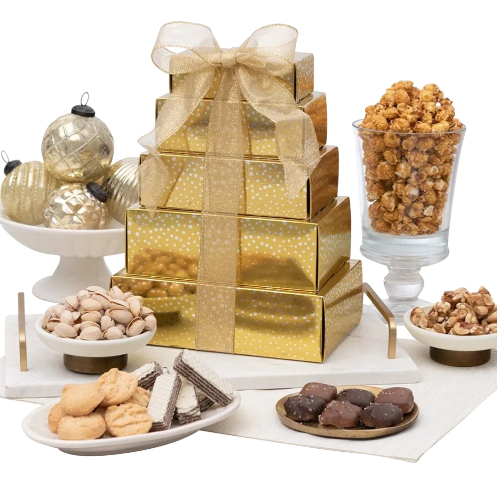 Gourmet Gift Baskets Holiday Tower Gift Basket Set, Set Of 7 Pieces