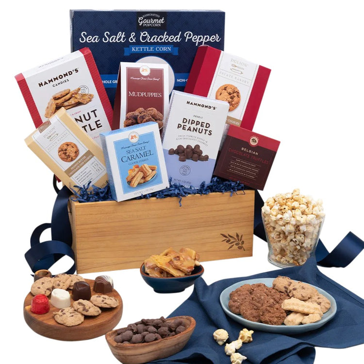 Cater to everyone's sweet tooth with the Gourmet Gift Baskets Snack And Chocolate Gift Basket. This basket comes with an assortment of chocolates, cookies and other sweet treats.