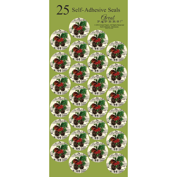 Great Papers! Holiday Seals, 1in, Brown/Green/Red, Pinecone Garland, Pack Of 50