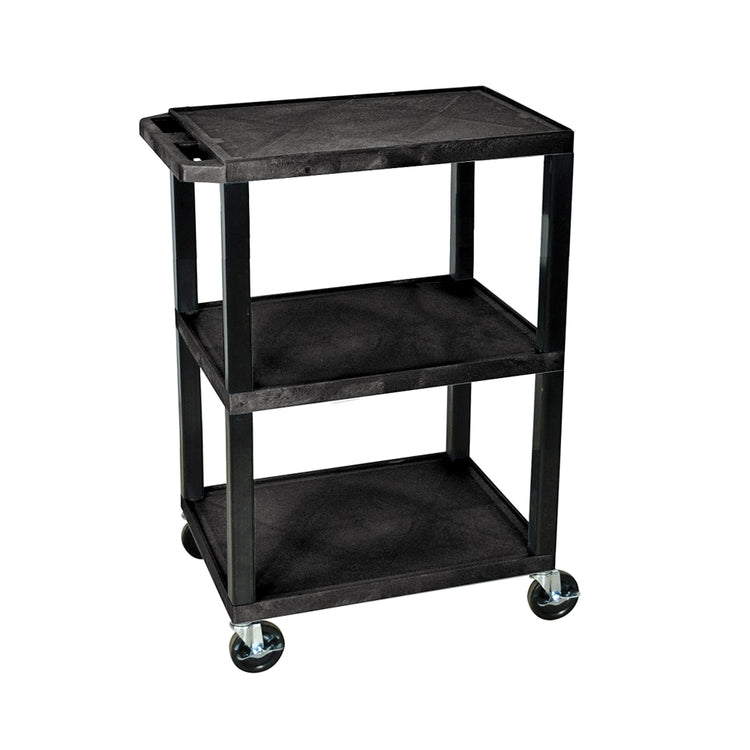 H. Wilson 3-Shelf Plastic Specialty Utility Cart, 34inH x 24inW x 18inD, Black Shelves/Black Legs