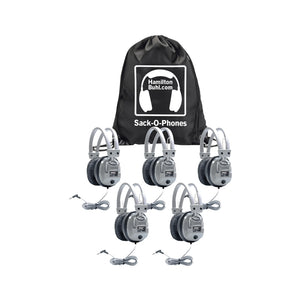 HamiltonBuhl SC7V Deluxe Sack-O-Phone Headphones, Silver, Pack Of 6 Headphones