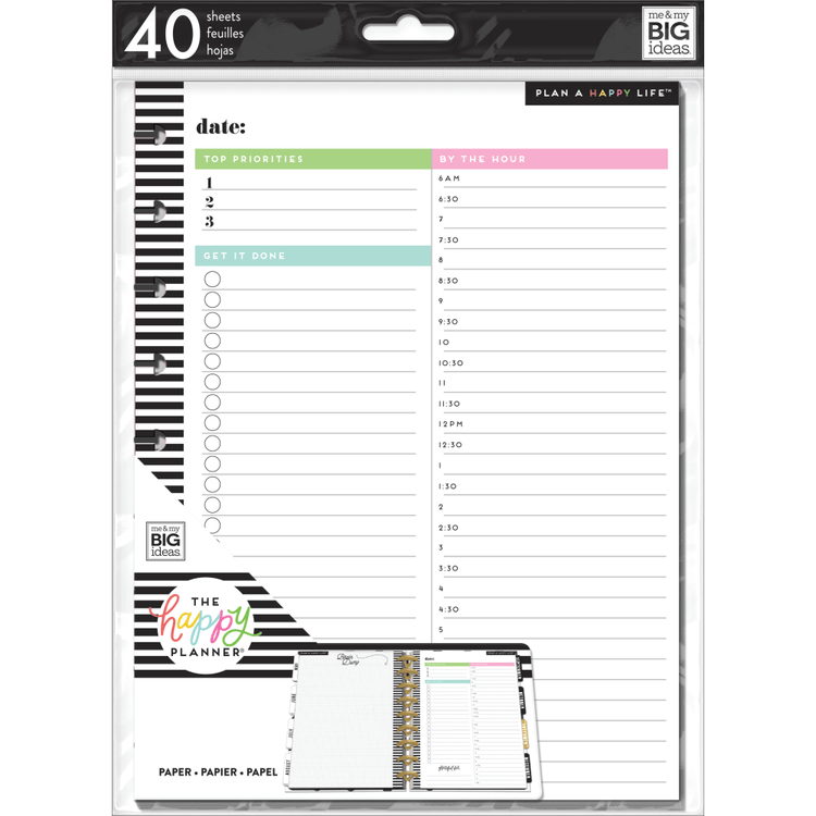 Happy Planner Classic Filler Paper, 40 Sheets, 7in x 9-1/4in, Daily