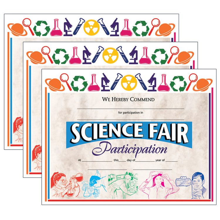 Hayes Certificates, 8-1/2in x 11in, Science Fair Participation, 30 Certificates Per Pack, Set Of 3 Packs