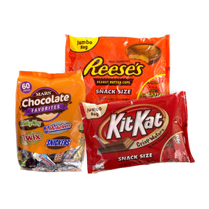 With this assortment of chocolates, you'll be the talk of the office. The fun-size candy bars make an excellent afternoon snack, and this assortment comes with 3 bags that each contain 60 pieces.