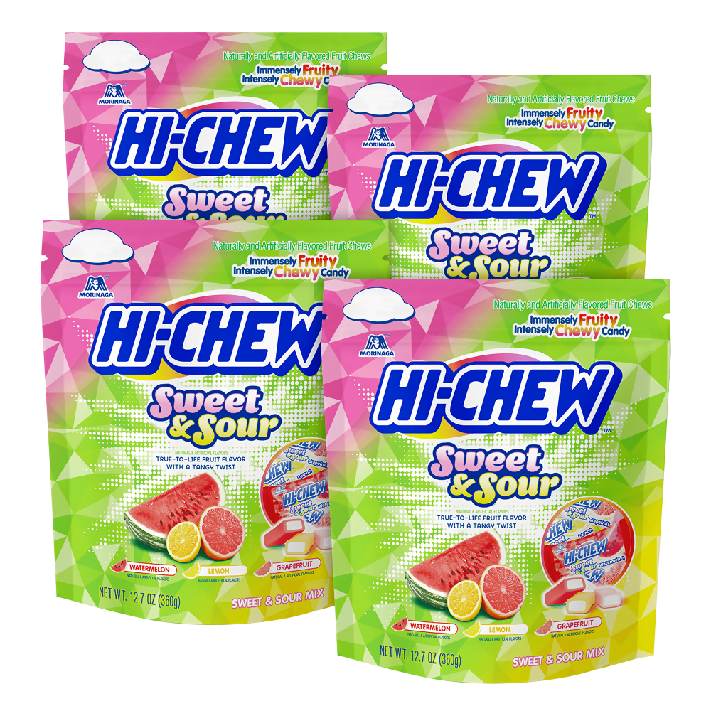 - A 4-Pack of Hi-Chew Sweet and Sour chewy candy Citrus Mix 12.7-Ounce pouches
